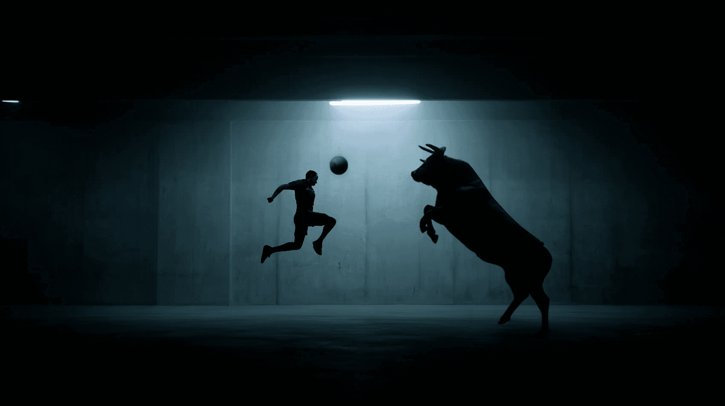 Inspired by the mythic labyrinth, this campaign concept places a footballer in a giant maze, where he eventually comes face-to-face with the minotaur; representing both the sheer power of the enemy in battle, and a mirror to the unconscious, overcoming adversity to push the limits of your body to victory.